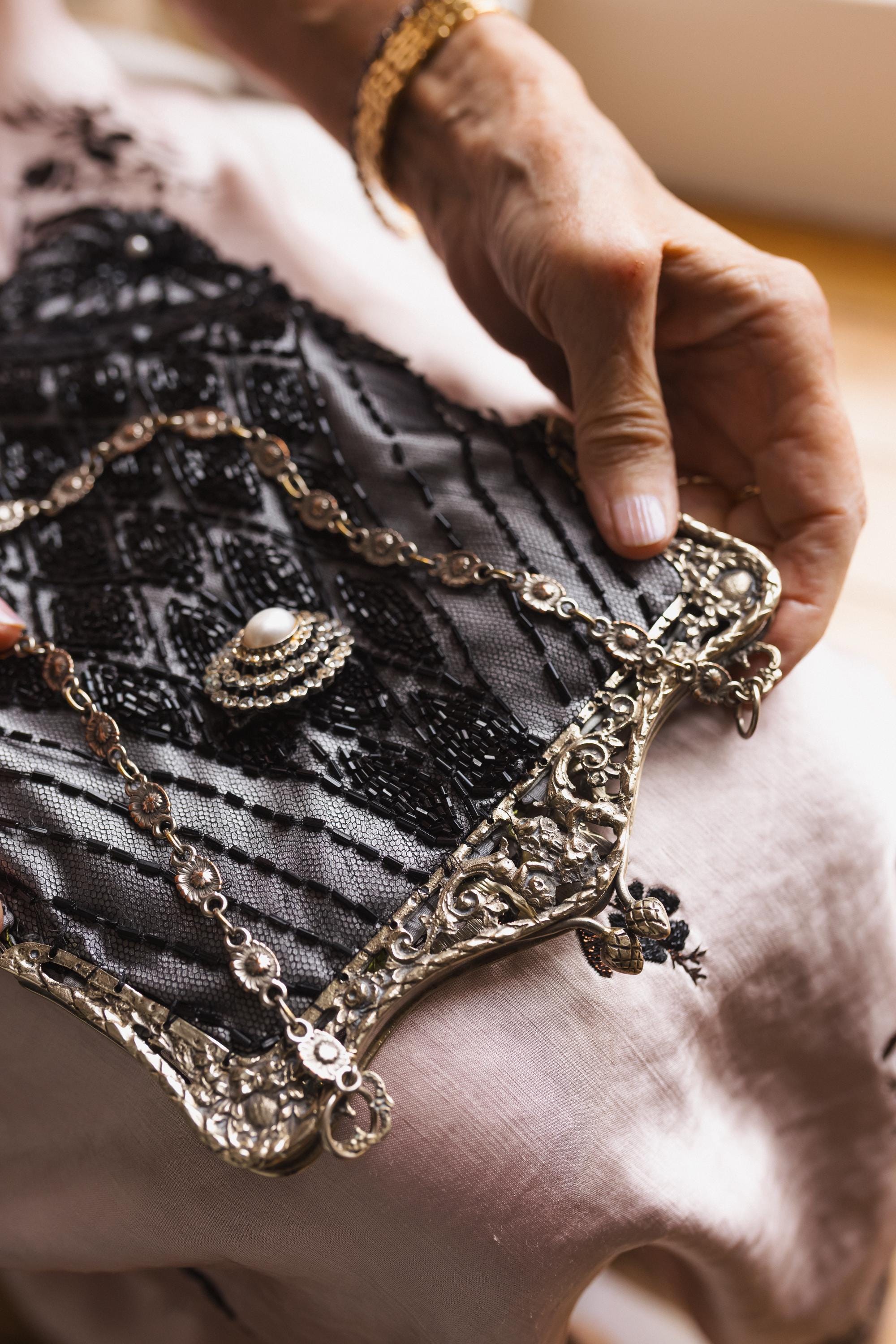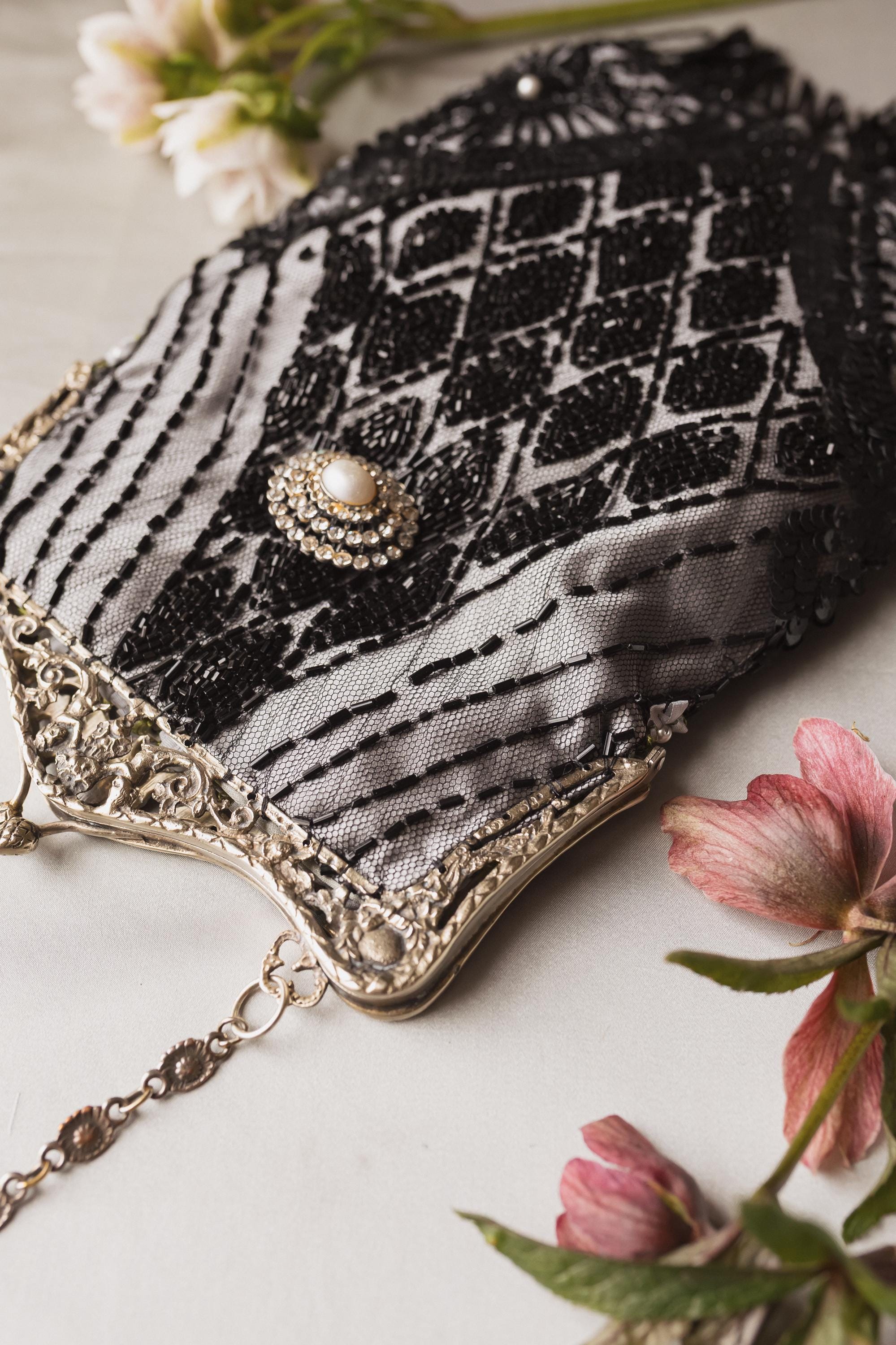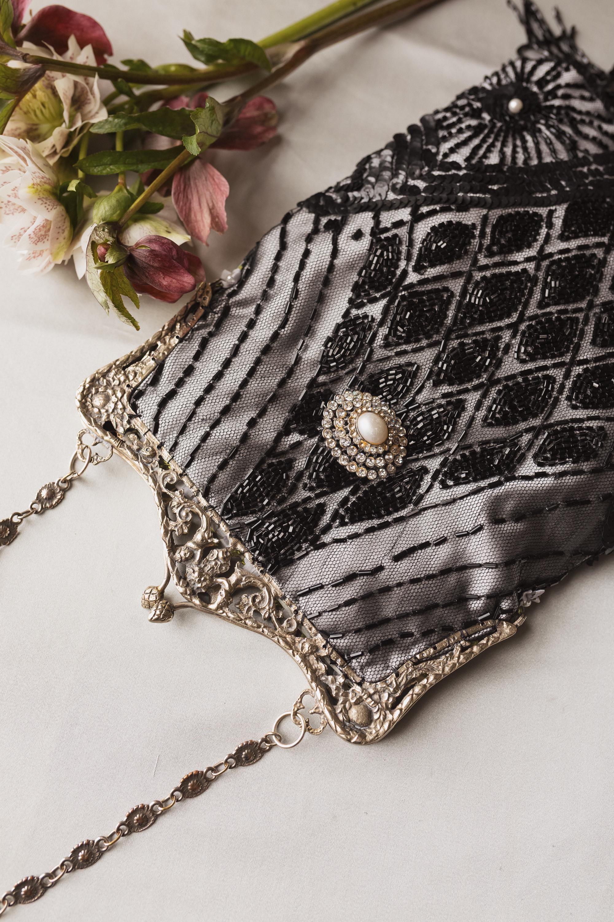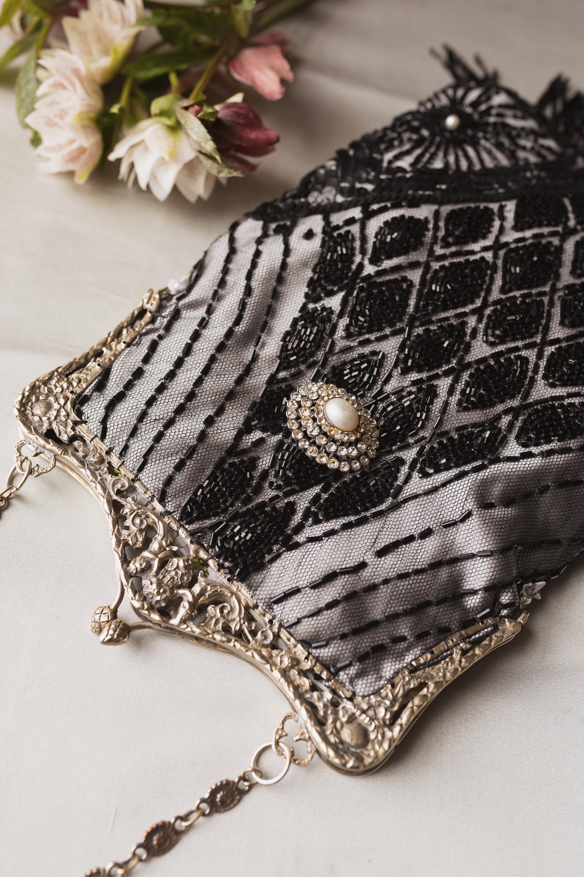 Hand made in Ireland using vintage lace and an Antique silver purse frame .