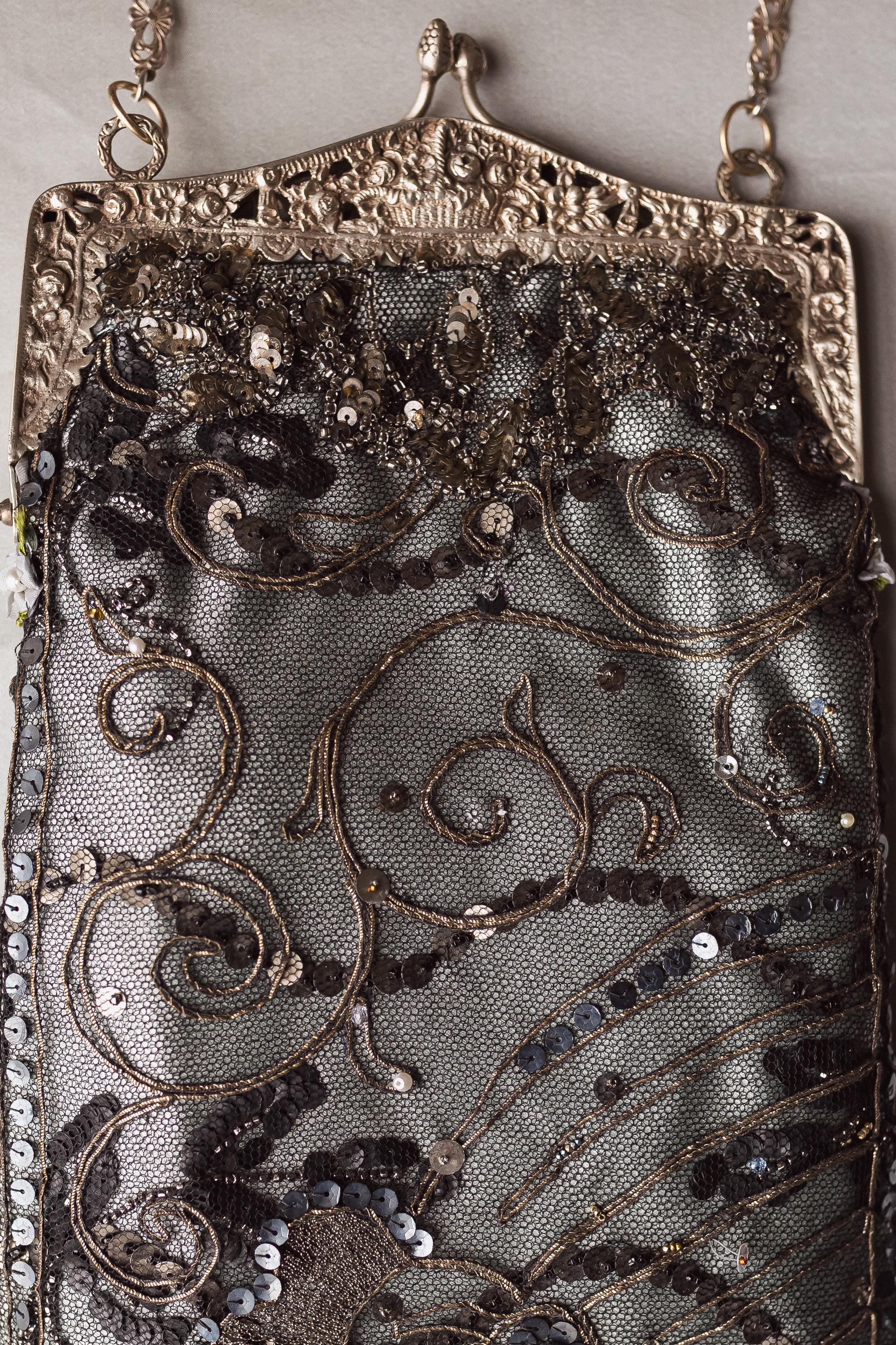 Beautiful antique silver purse frame c 1920 it measures 6 1/2 inches wide hallmarked 800 It was made in Italy. The original chain handle is still attached .